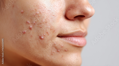 acne, skin, face, closeup, woman, inflammation, pimple, blemish, dermatology, skincare, health, beauty, female, pore, complexion, medicals, treatment, breakout, lip, mouth, nose, closeup, make-up, profile, closeup, model, fashion, make-up, lip, person, eye, eye, smile, facial