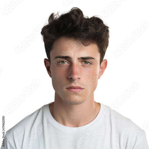 man, guy, serious, photogenic, head shot, closeup, face, casual attire, young, isolated, transparent, confident, white, portrait, t-shirt, confidence, cut-out, people, person, happiness, expression, closeup, looking, model, man, fashion