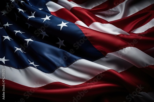 Close up of an American flag on a black background. Suitable for patriotic designs