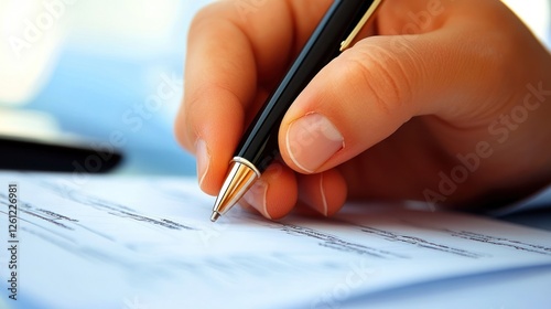 Close up of Business person writing or signing a document with pen