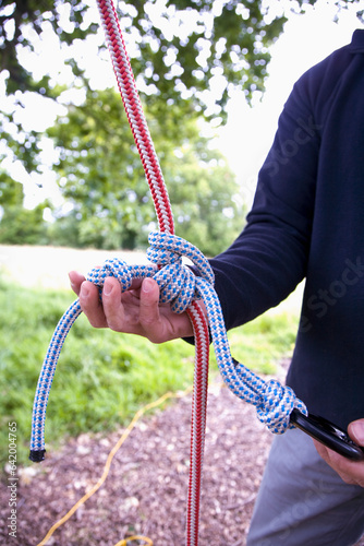 vertical, beauty, checking, climber, climbing, closeup, close-up view, daylight, equipment, exam, examining, free time, gear, hand, headless, holding, individual, inspecting, inspection, knot, leisure, male, man, masculine, man, 1, one person, outdoors, outside, people, person, recreation, rope, safety, scrutiny, security, single, sport