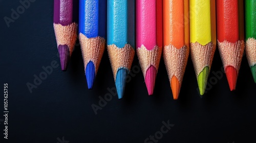 Close up of colorful pencils with copy space on black background
