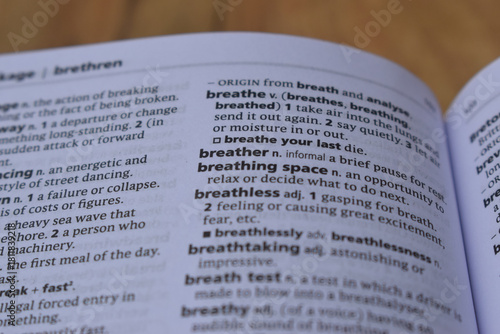 Close Up Of English Definition Dictionary Page Word Of - breather