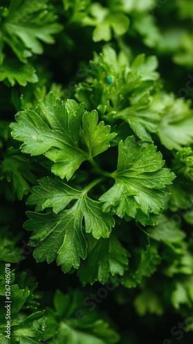 Close Up of Fresh Green Parsley Leaves with Intricate Details and Vibrant Color