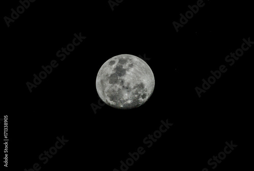 Close up of full moon over black sky. Black and white.