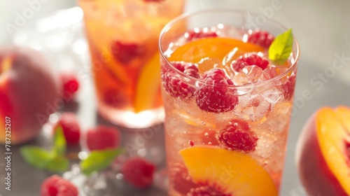 Close Up of Glass of Iced Tea With Raspberries