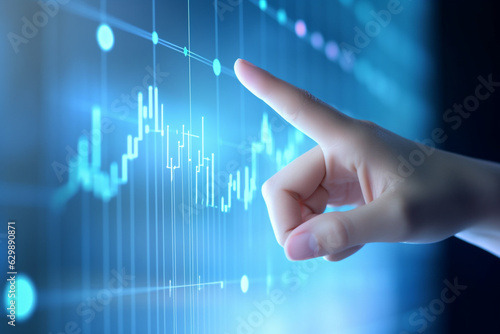 Close up of Hand business woman putting digital graph.Business and finances concept. Created with Generative AI technology