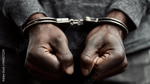 Close up of hands in handcuffs symbolizing crime arrest law enforcement and justice