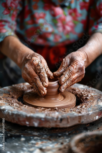 Close up of Hands Working with Clay Capturing Craftsmanship, The Intricate Artistic Process of Pottery Creation, Celebrating Skilled Hands and Handmade Artistry through Pottery Making