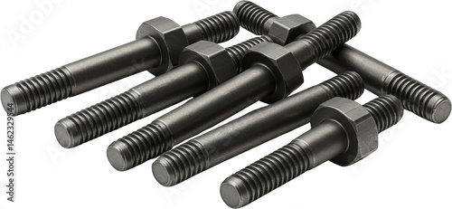 Close up of Industrial Grade Hex Bolts and Nuts Metal Fasteners Machine Parts