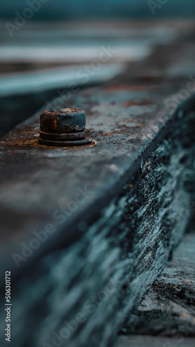 close up of metal nut with a bolt in a wooden product