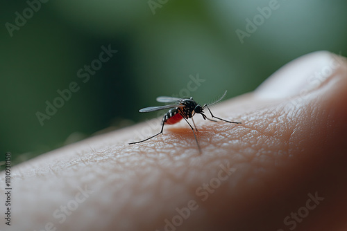 close up of mosquito biting skin, showcasing Zika virus aedes disease