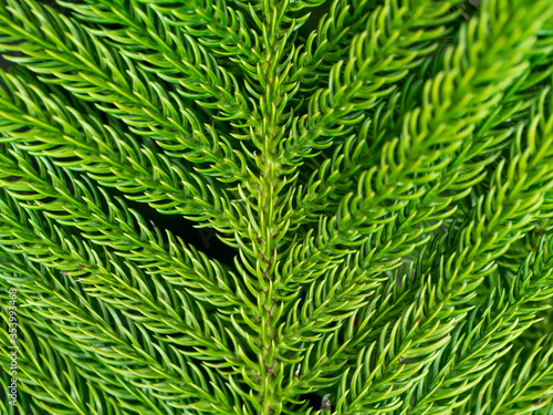 Close up of Norfolk Island Pine leaves background.