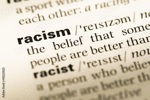 Close up of old English dictionary page with word racism
