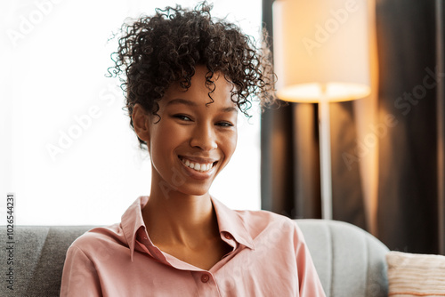 happy, smiling, woman, home, portrait, living room, lifestyle, african american, beautiful, natural, day, happiness, weekend, couch, soft focus, peace, morning, leisure, mental health, young adult, well-being, joy, relaxation, natural light, contentment, authentic, break, casual attire, shopping, sale, store, advertisement, cheerful, comfort, cosy, dental, domestic life, interior, indoor, one person, relaxing, serenity, calmness
