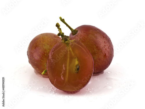 Close up of red sliced grapes with on white background.