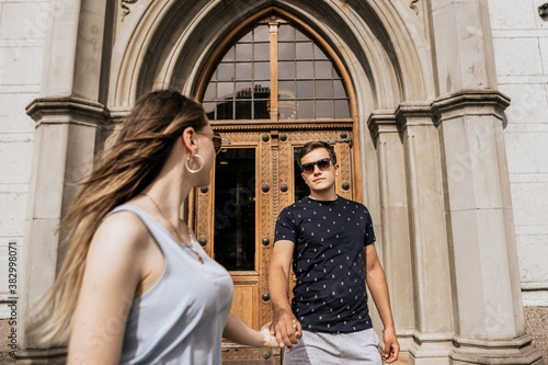 romantic, couple, building, racked, hold hands, photogenic, hold, holding hands, background, girl, white, man, people, human relationships, together, love, affection, boyfriend, fashionable, friendship, girlfriend, hand, togetherness, wife, dating, downtown, elegance, embracing, enjoy, enjoyment, flirting, guy, honeymoon, husband, inspiration, rest, romance, trendy, two people, clothing, blue, jean, black, brown, goggles