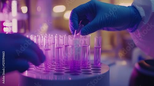 laboratory, science, experiment, laboratory, test tube, tube, purple, pink, blue, glove, liquid, research, scientist, chemical, clear, sterile, glasses, medicals, equipment, chemistry, beaker, analysis, ampoule, fluid, investigation, technology, health care, medicine, professional, exam, biotechnology, innovation, discovery