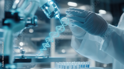 scientist, hand, glove, deoxyribonucleic acid, laboratory, research, closeup, biotechnology, science, medicals, experiment, technology, health care, genetic, microscope, ampoule, analysis, innovation, precision, blue, modern, scientific, molecular, laboratory, chemistry, genetic, study, healthcare professional, advanced technology, molecular biology