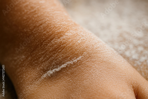 skin, hand, flour, closeup, texture, macro, dry, powder, detail, human, baking, surface, soft light, tactile, touch, mess, cooking, ingredient, body part