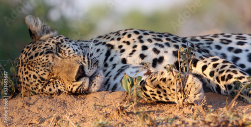 Close up of sleeping leopard, Sabi Sands game reserve South Africa