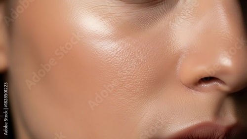 Close Up of Smooth Female Skin with Natural Makeup and Soft Lighting