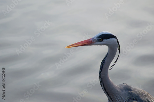 bird, heron, animal, beak, nature, zoo, lookout, water, grey, orange, closeup, crest