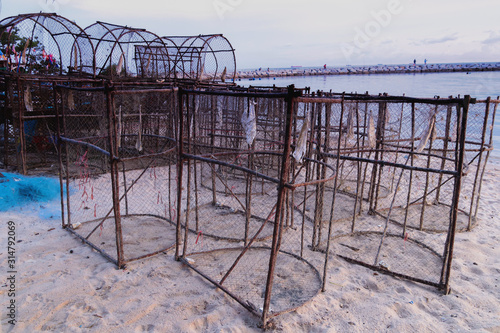Close up of the knots in a fish trap