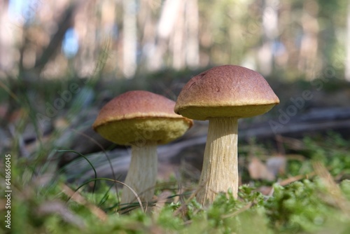 cap, 2, forest, mushroom, edible, couple, closeup, boletus, autumn, beautiful, brown, closeup, fall, food, fungal, fungal, little, macro, moss, mycology, nature, season, young