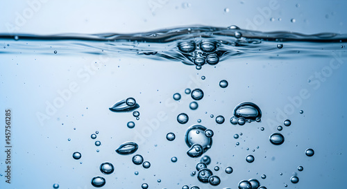 Close Up of Water Surface With Submerged Bubbles in Light Blue Showing Freshness and Purity