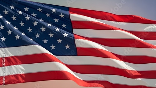Close Up of Waving American Flag Symbol of Freedom