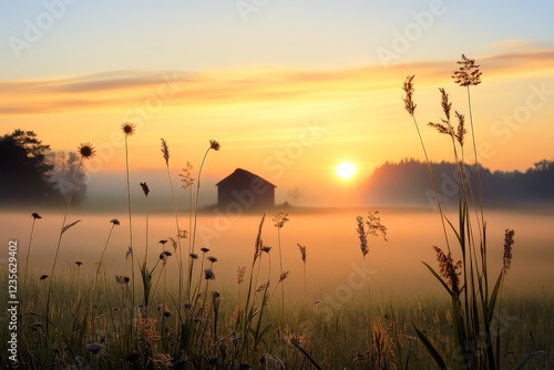 sunrise, rural, gold, mist, nature, peaceful, serene, field, wildflower, soft light, calm, landscape, outdoors, dawn, agriculture, scenic, beauty, rustic, sunlight, horizon, calmness, growth, meadow, farm, sky, vibrant, flora, green, countryside, new day, hope, warm tones, idylli, summer, adventure, harmony, natural, lush, scenic view, pastoral, solitude, refreshing, wildlife, open space, exploration, well-being