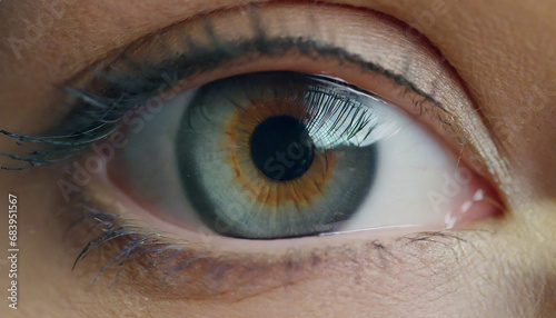 Close up of woman eye in process of scanning