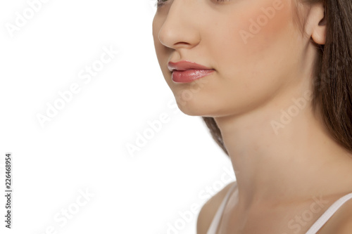 woman, portrait, closeup, young, beautiful, face, long, hair, closeup, straight, girl, beauty, positive, female, people, model, studio, attractive, looking, adult, isolated, camera, natural, fashion, person, pretty, 1, cute, skin, caucasian, eye, youth, modern, brunette, make-up, casual attire, white background
