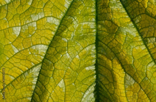 Close up on yellow Zuchinni leaf. Large yellow zucchini leaf texture