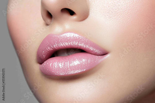 Close up photo of beautiful pink woman's lip. Generative Ai.