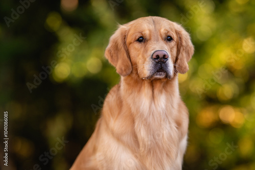 close up portrait beautiful dog golden retriever labrador in autumn in nature at sunset