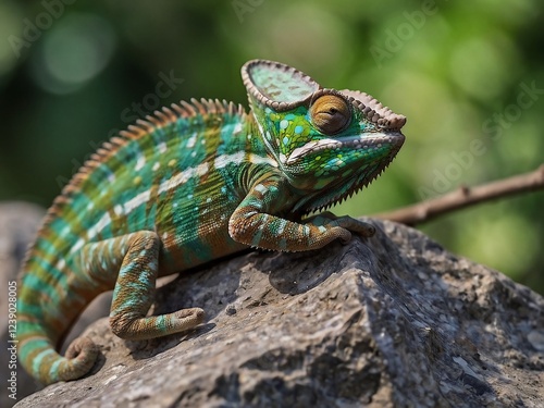 Close Up Portrait of a Colorful Chameleon in Its Natural Tropical Habitat