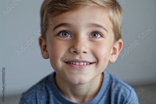 Close Up Portrait of a Happy Caucasian Boy Looking Curious