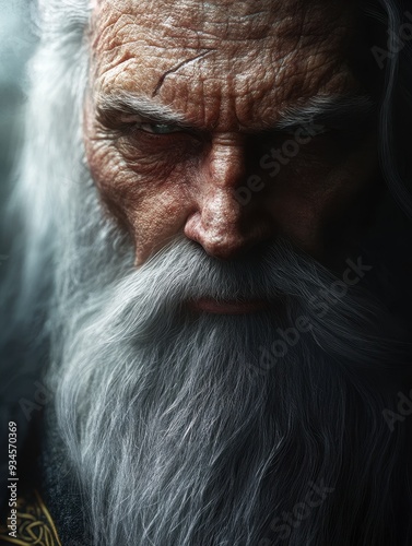 senior, man, face, beard, white, long, portrait, mysterious, intense, eye, powerful, closeup, detail, old, aged, wisdom, ancient, character, fantasy, mythology, legend, mystical, magic, magician, sorcerer, elder, grandfather, patriarch, expression, looking, gaze, serious, determined, dramatic, storytelling, art, illustration, digital artwork, graphic, design, concept, photorealistic, three-dimensional, render