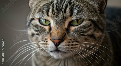 Close up Portrait of a Tabby Cat with Striking Green Eyes Detailed Fur Texture
