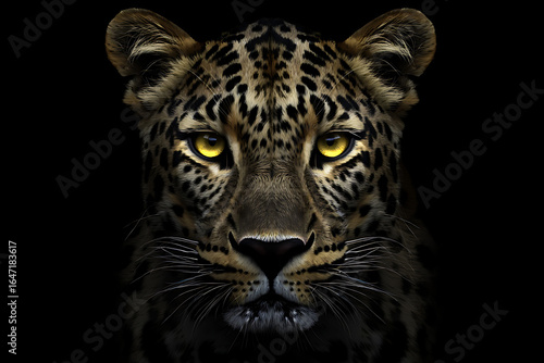 Close up portrait of a wild leopard with spotted fur and piercing eyes.