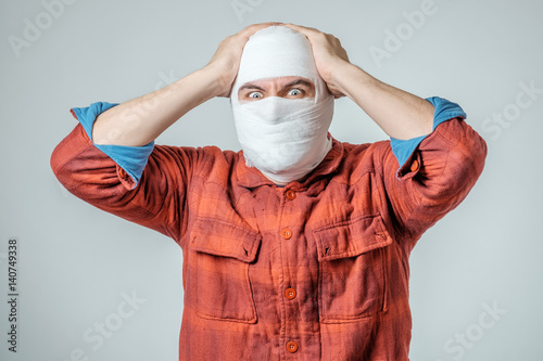 accident, adhesive, annoyed, background, bandage, bandaged, beaten, brain, care, depressed, emotional, face, first, head, cephalalgia, health, health care, hospitalise, disease, injured, injury, isolated, maim, male, man, medicals, medicine, nervous, pain, patient, pensive, person, physical, portrait, problem, recovery, sad, serious, sick, surgery, trauma, unhappy, upset, victim, white, wound, young