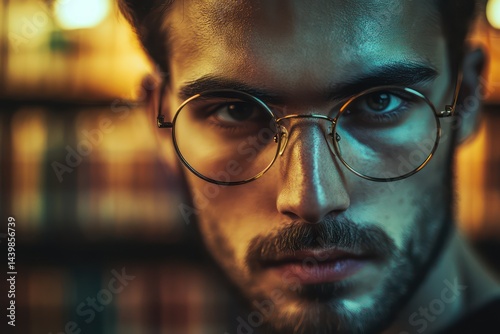 man, portrait, face, eye, nose, mouth, expression, serious, gaze, portraiture, closeup, detail, human, adult, male, night, light, lighting, colours, warm, cool, tone, blurred, background, design, photorealistic, image, visual, artistic, digital, graphic, modern, creative, art, person, people, photo, digital artwork, visual arts