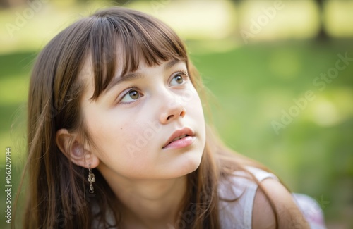 children, girl, portrait, closeup, face, pensive, thoughtful, thinking, children, young, brown hair, brunette, charming, cute, looking up, park, nature, outdoors, facial expression, emotion, dream, dreaming, imagine, imagination, reflect, contemplate, contemplation, serious, concentrated, sharpened, concentration, attentive, learning, education, childhood, innocence, youth, beauty, beautiful, pretty, adorable, sweet, innocent, lovely, nice, positive, optimistic, cheerful