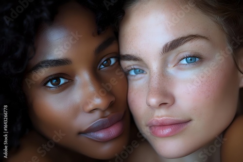diversity, multicultural, natural makeup, blue eye, dark skin, contrasting, oneness, inclusion, facial features, ethnic diversity, skincare, model, soft light, curly hair, natural beauty, authentic, genuine, sisterhood, togetherness, harmony, glamour, confidence, empowerment, representation