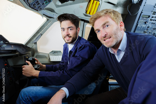 portrait, cockpit, training, interior, aviation, male, smiling, aerial, cabin, airforce, air, adult, copy space, caucasian, people, blue, apprentice, navigation, vehicle, professional, 2, military, aircraft, close, travel, journey, steering, work, coach, technology, transportation, helicopter, transport, inside, ride, flying, flight, view, life, simulator