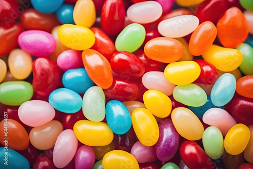 Close up shot of a pile colorful jelly beans, texture background. Generative AI