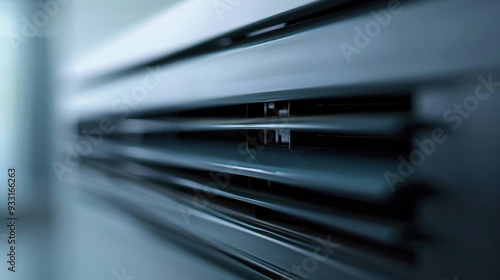 Close up view of an air conditioning vent, showcasing sleek design and modern aesthetics. image conveys sense of coolness and comfort.
