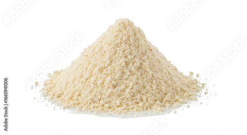 Close up view of fine pile of flour isolated on white background ideal for baking